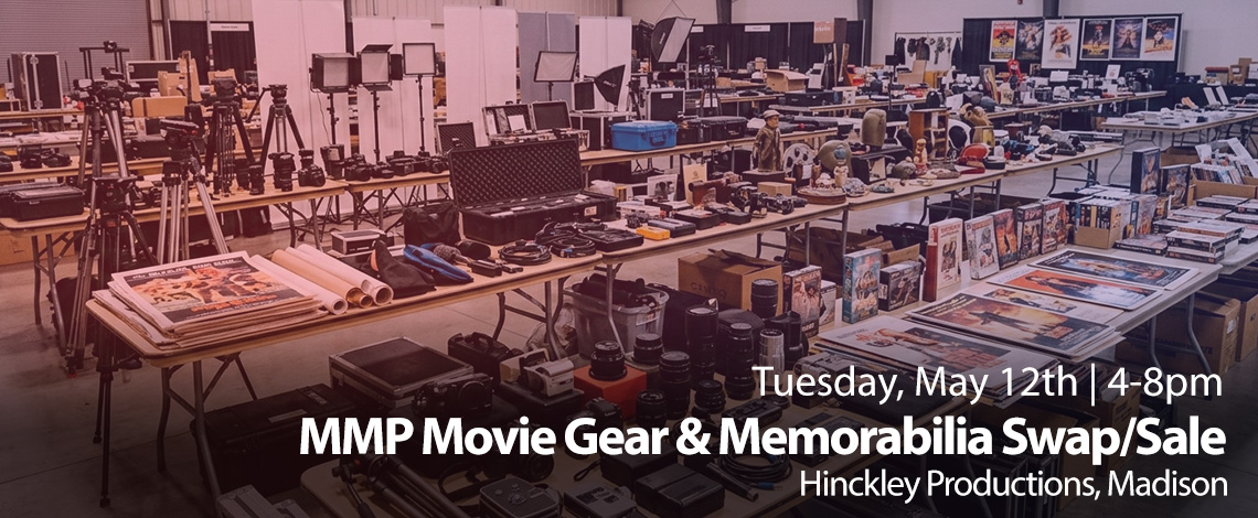 MMP is hosting a Movie Gear & Memorabilia Swap/Sale on May 12th at Hinckley Productions. Bring or browse video/cinema/photo cameras, audio, lighting, grip, and more – plus movie fan favorites like posters, props, DVDs, VHS, vintage cameras, and other collectibles.